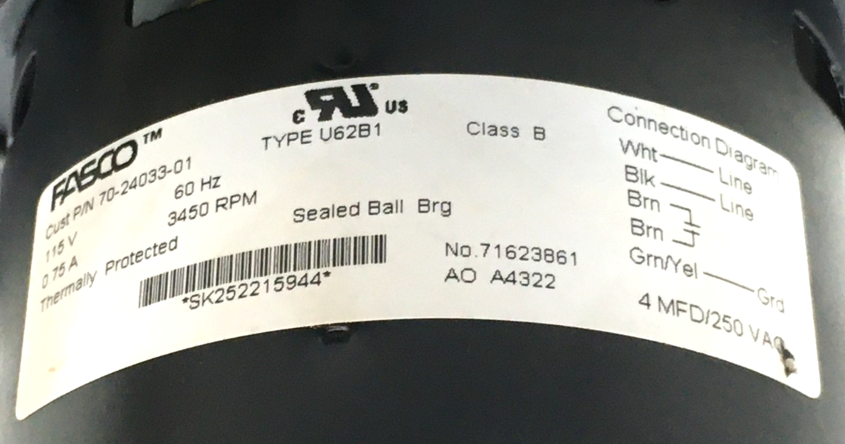This is FASCO 71623861 Draft Inducer Blower Motor Assembly 70626562 70-24033-01 3450 RPM 115V used part.