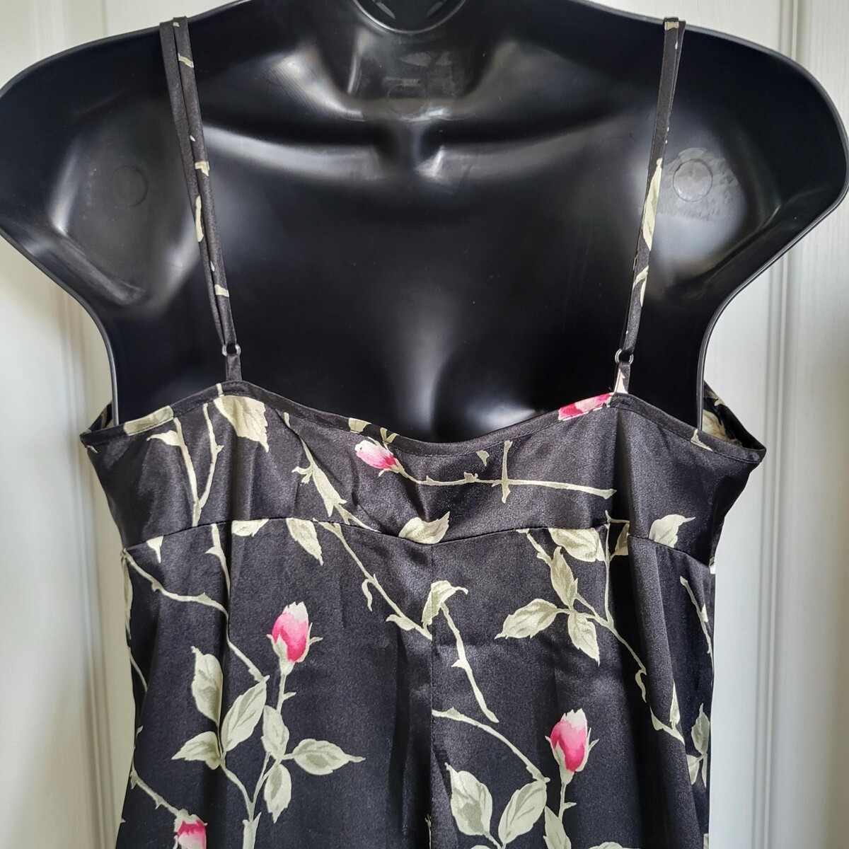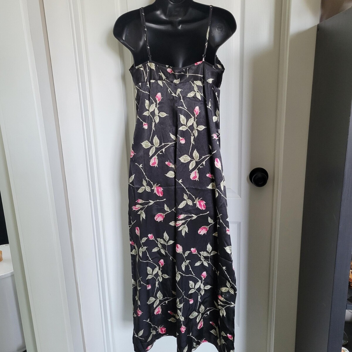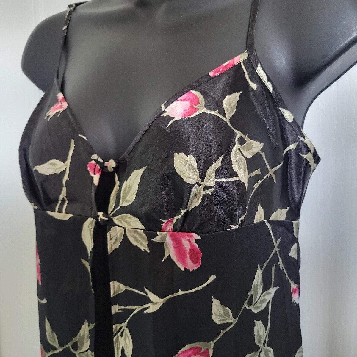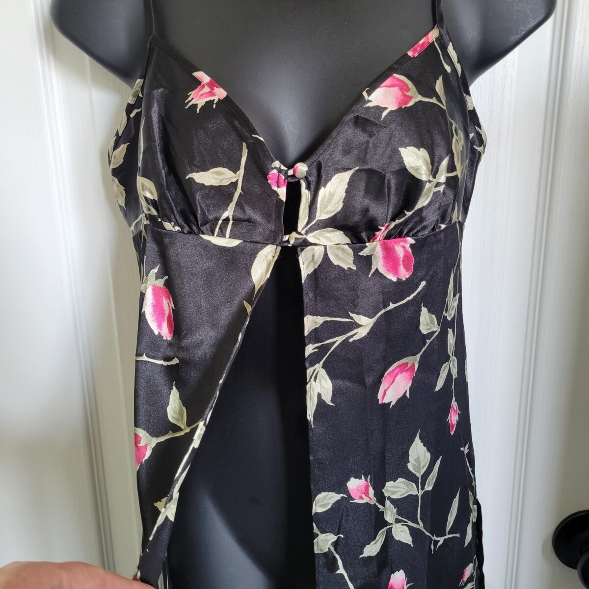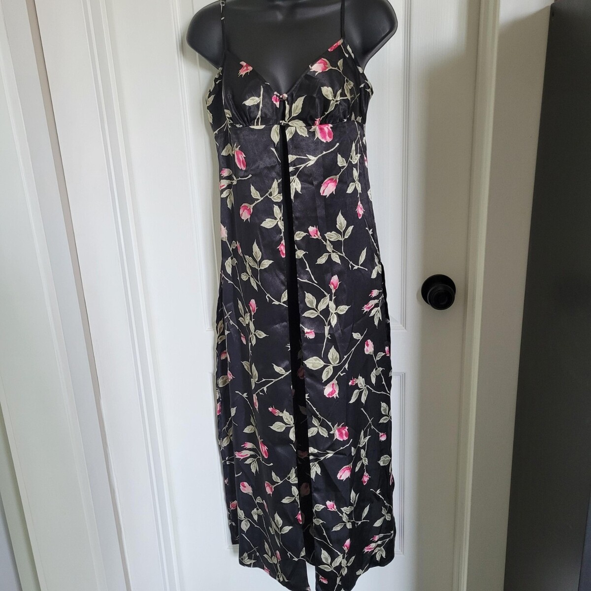 Fredericks Of Hollywood Long Chemise Nightgown Med Black Satin Open Slip Dress