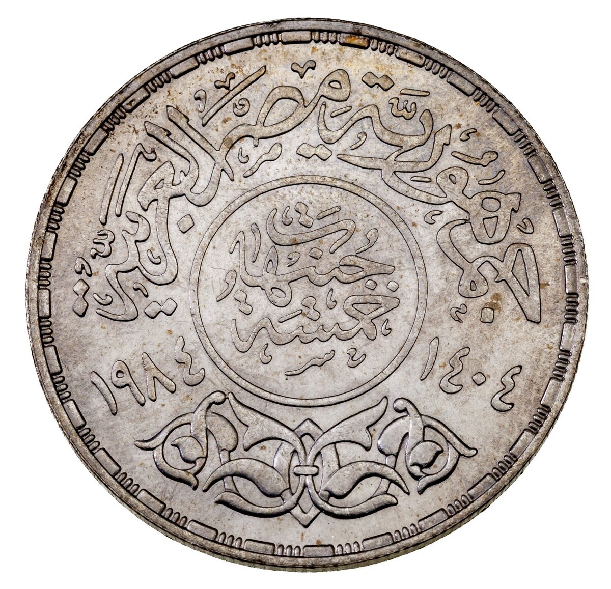 1404-1984 Egypt 5 Pounds Silver coin in BU Condition, KM 565