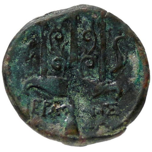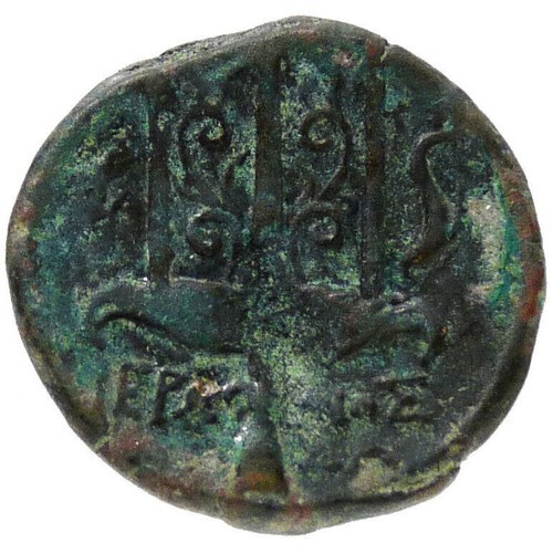 Reverse: Ornamented trident head flanked by two dolphins; IEP?-NO? below.