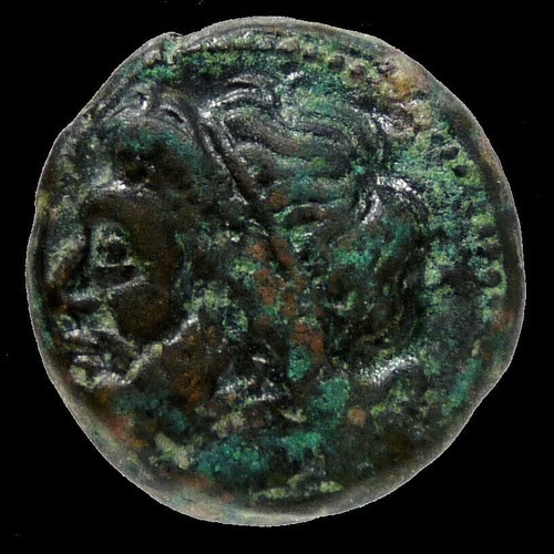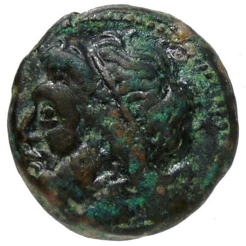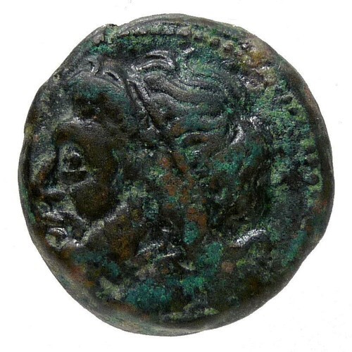 Obverse: Head of Poseidon left, wearing tainia.
