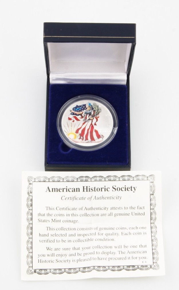 1999 Colored American Silver Eagle Viene con caja, caja y certificado de autenticidad Compradores de California: Se agregara un impuesto sobre las ventas del 9 % Confirmacion de seguro y entrega o confirmacion de firma en compras múltiples. no se combinaría. Agradecemos su comprension. Llamenos con cualquier consulta: Departamento web de la empresa continental de monedas y joyas: Lunes a viernes, de 10:30 a.m. a 6 p.m. (818-781-4232) Artículo de referencia # SCU-1171 31/12/13 OD