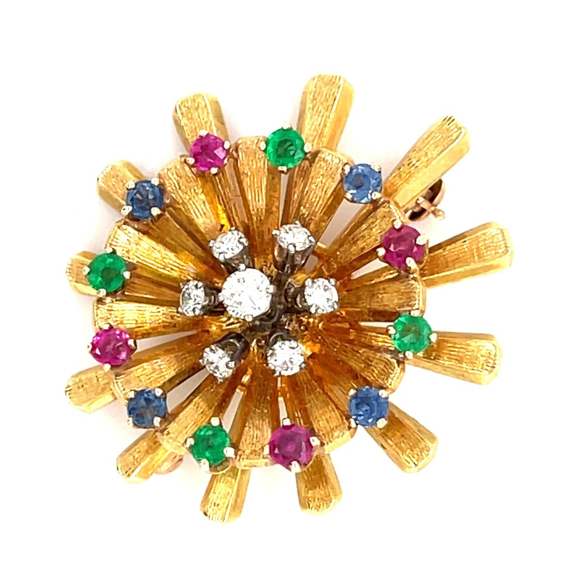 Schon Carl D. Lindstrom Windrad-Brosche aus 18 Karat Gold mit Diamanten und Edelsteinen von 0,28 Karat
