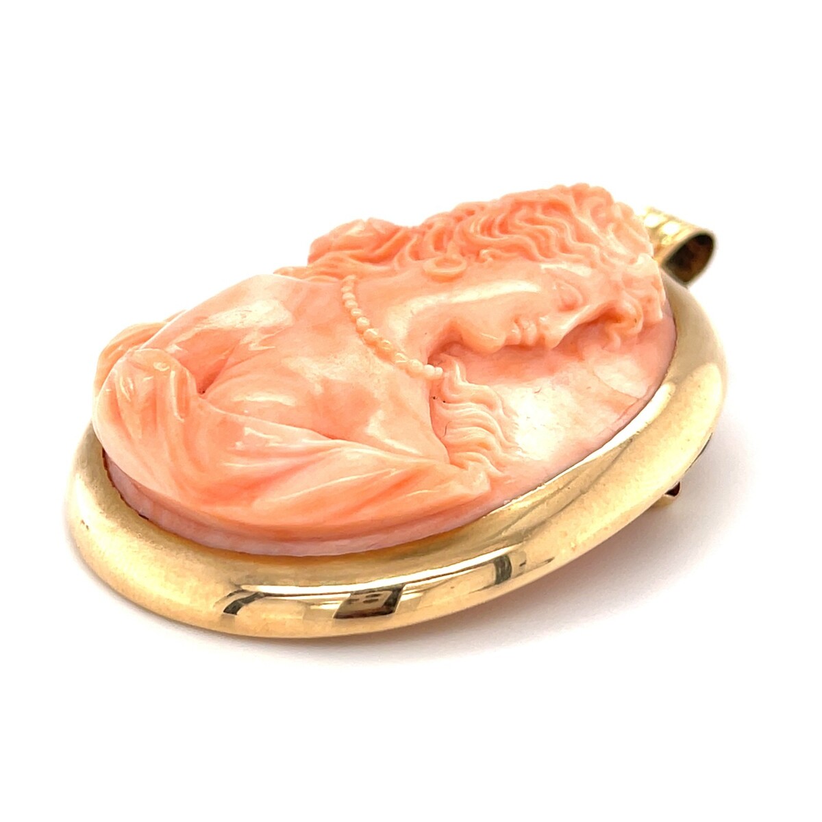 Geschnitzter Korallen Cameo-Anhanger in 10k Gold 2-3/16 "x 1-5/8" 38,9g