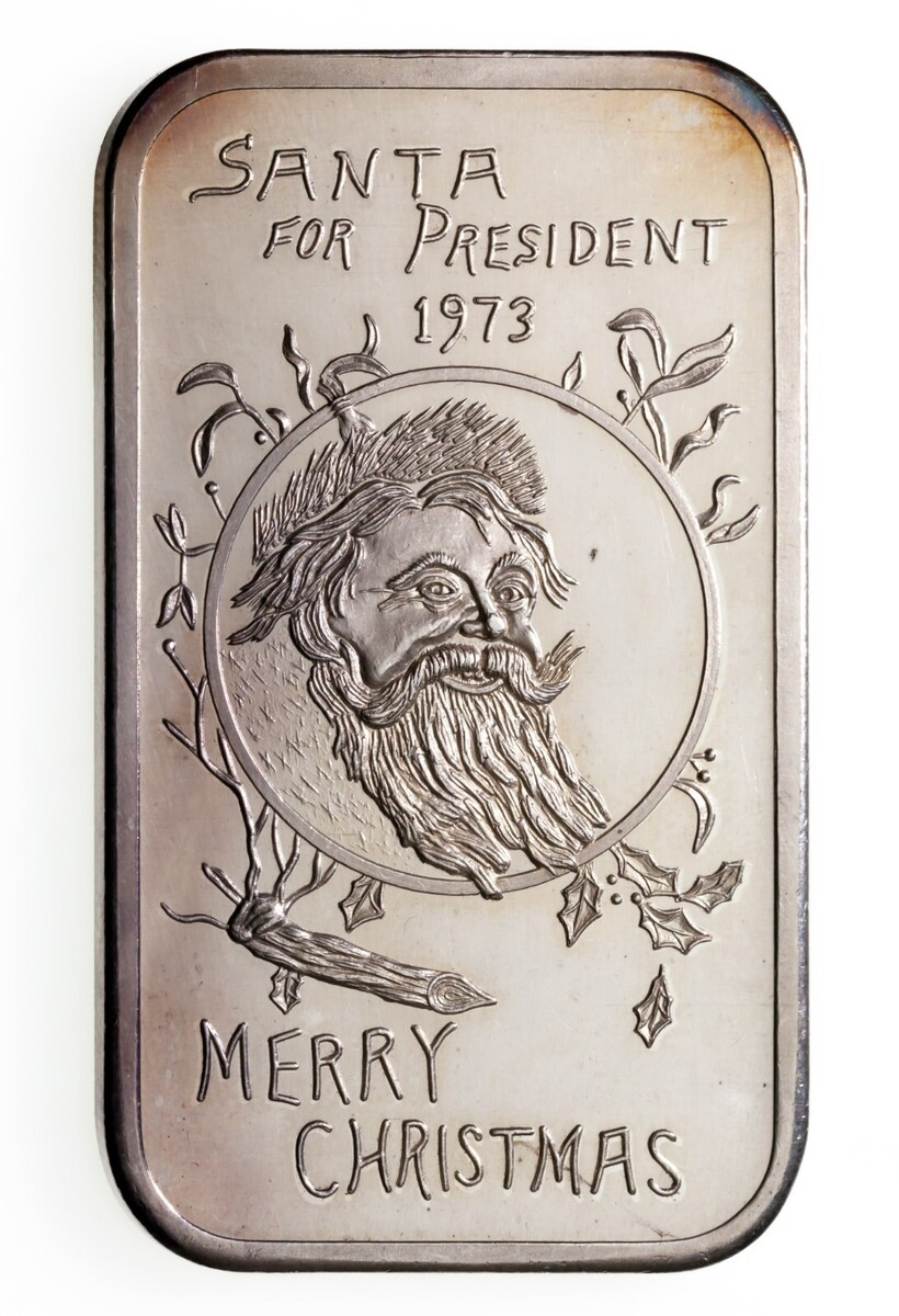 1973 "SANTA FOR PRESIDENT" Buon Natale Di R. J. Gillio 1 oncia. Argento Art Bar basso seriale n. 0052