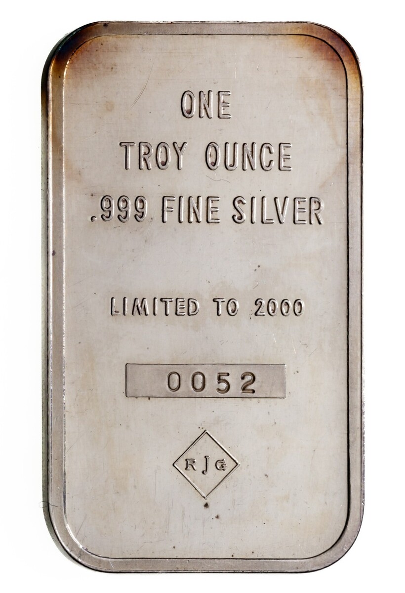 Rovescio: "ONE TROY OUNCE .999 FINE SILVER" "LIMITED TO 2000" 0052 "RJG LOGO"