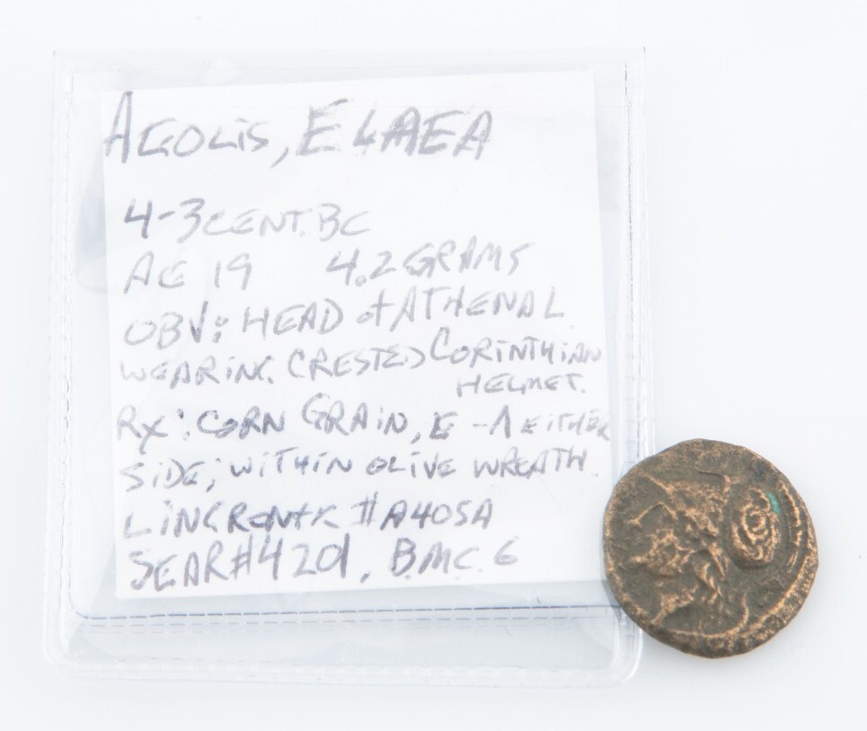 4th-3rd Century BC Greco AE19 Moneta VF+ Aeolis Elaea Athena Grano Sear-4201