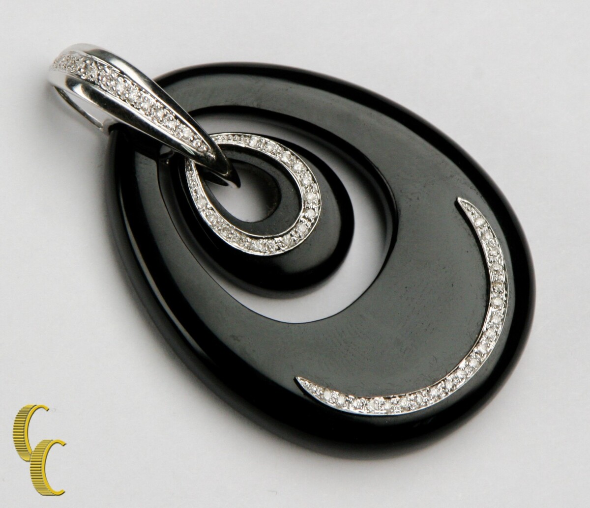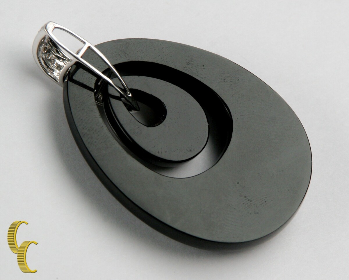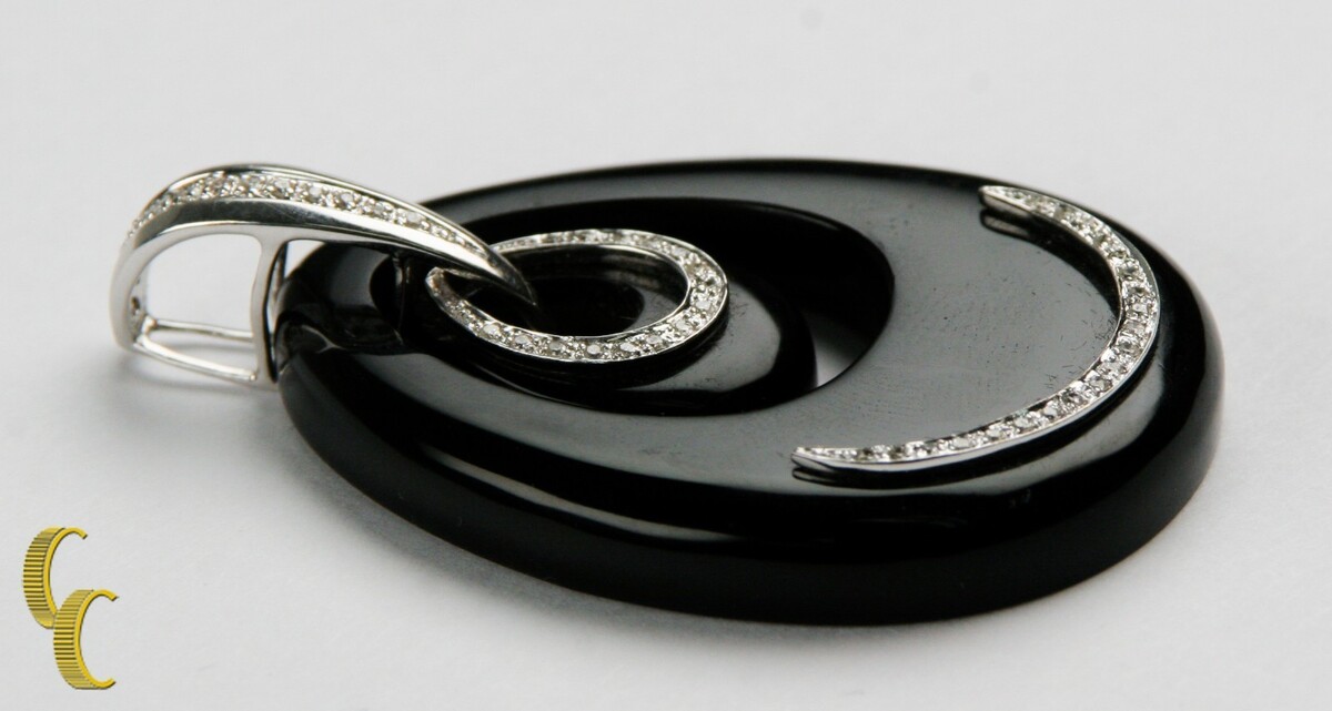 Damen 18K Weißgold Oval Geformter Schwarzer Onyx & Diamant Anhänger