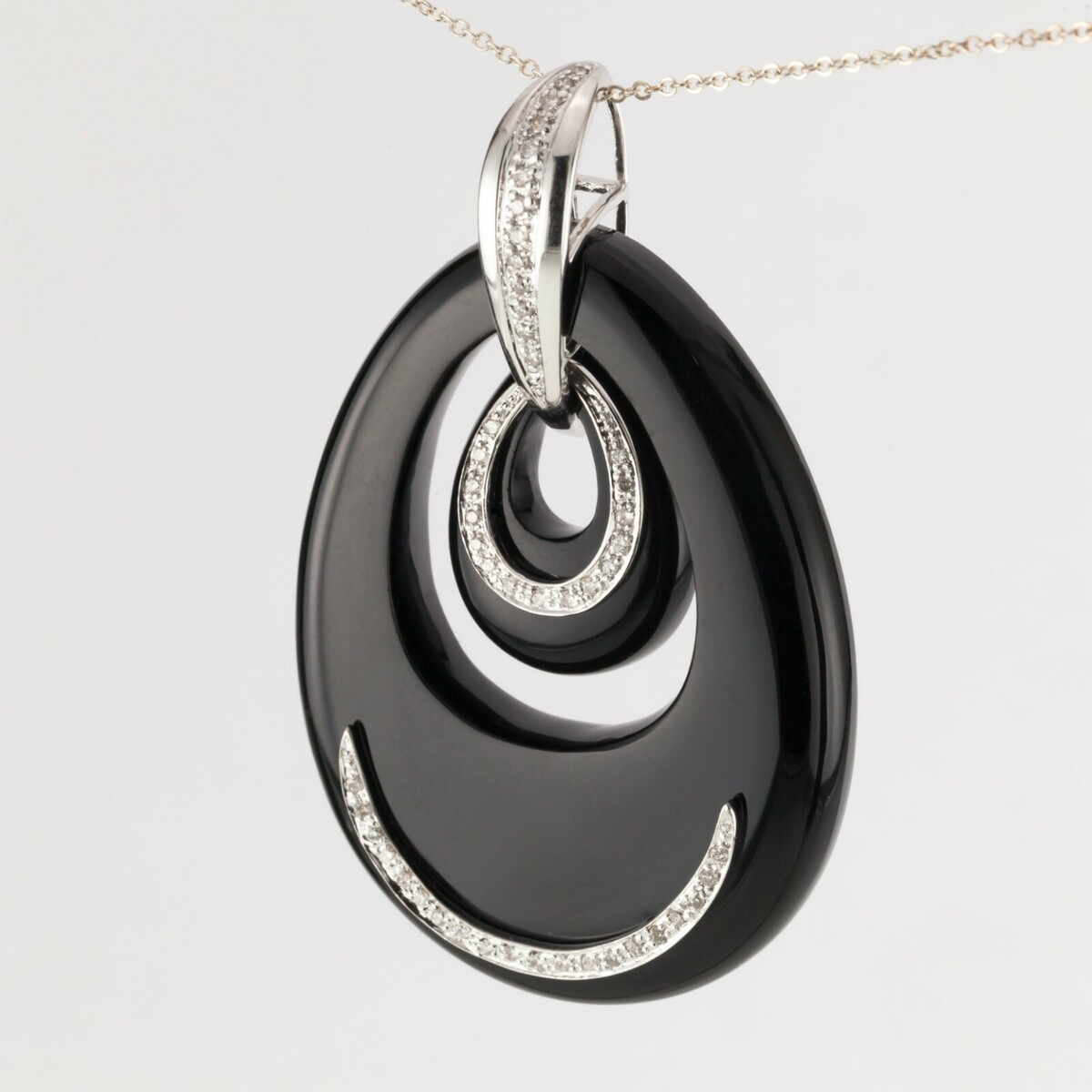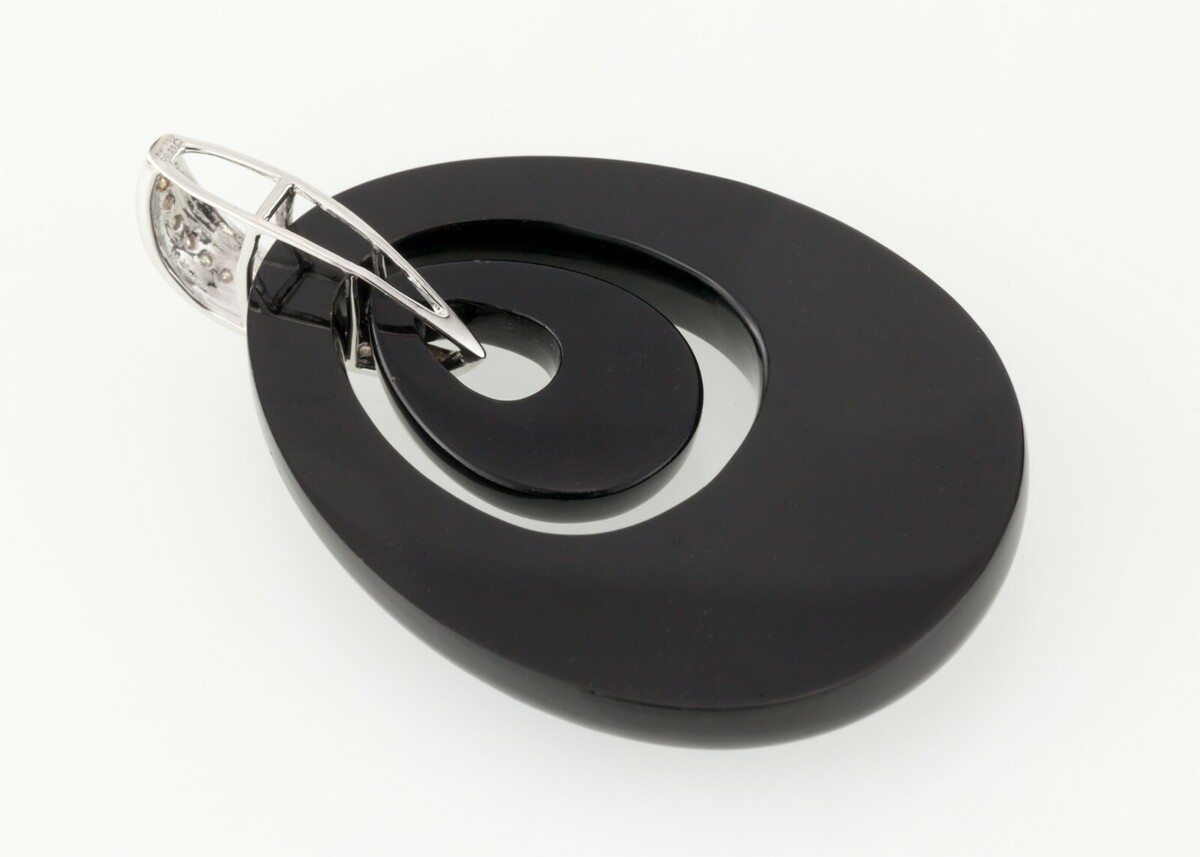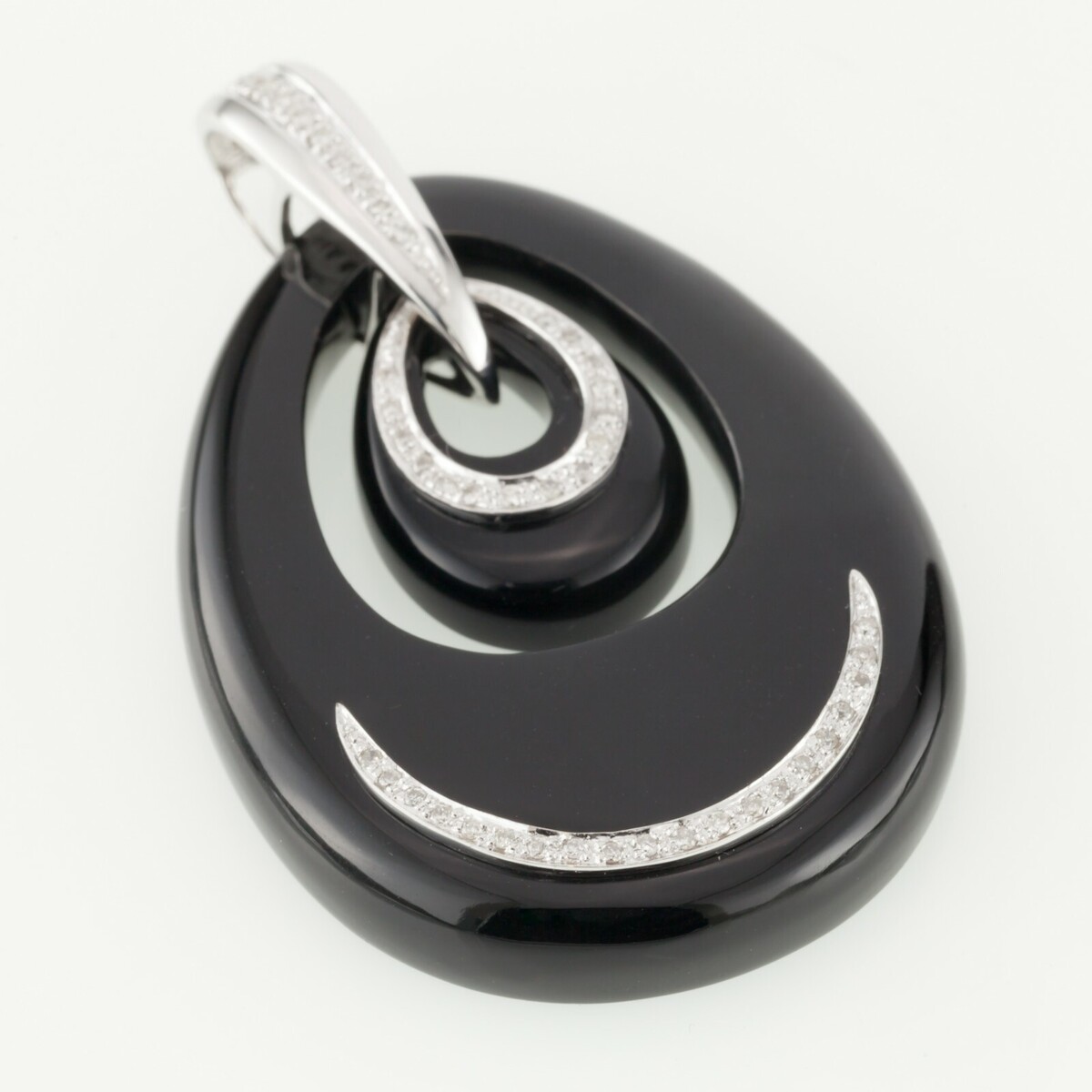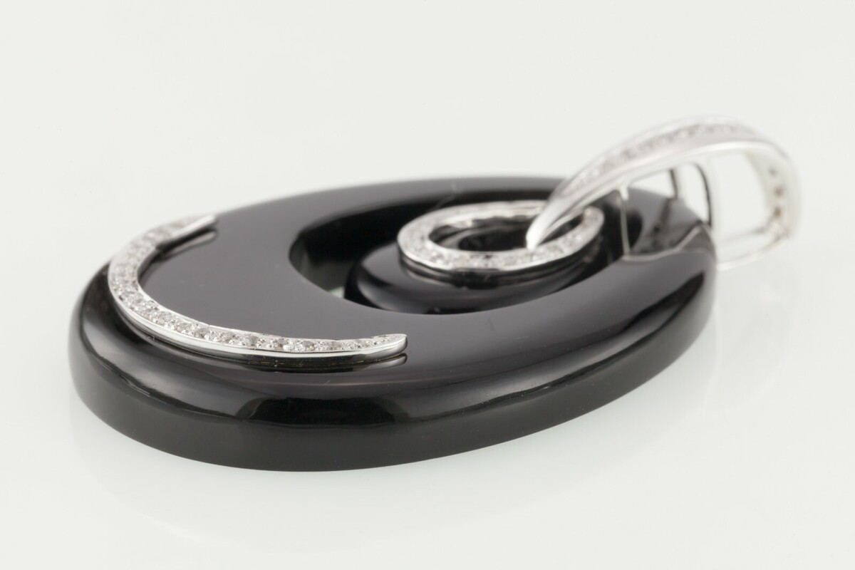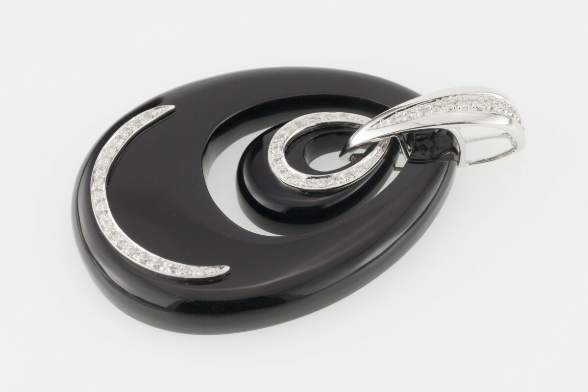 Ovaler Damenanhanger aus 18 Karat Weißgold mit schwarzem Onyx und Diamant
