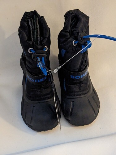 A vendre est une nouvelle paire d'etiquettes de bottes de neige d'hiver Sorel doublees isolees bleu noir pour tout-petits 6 1831 SWL NOUVEAU.