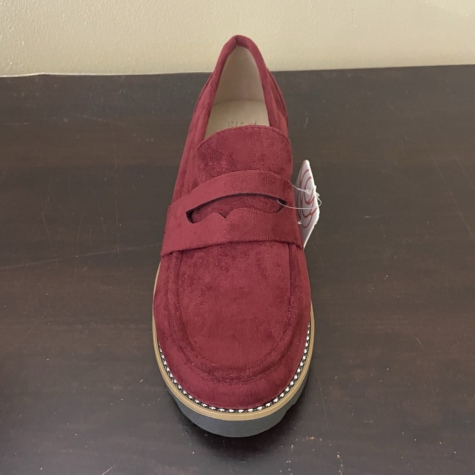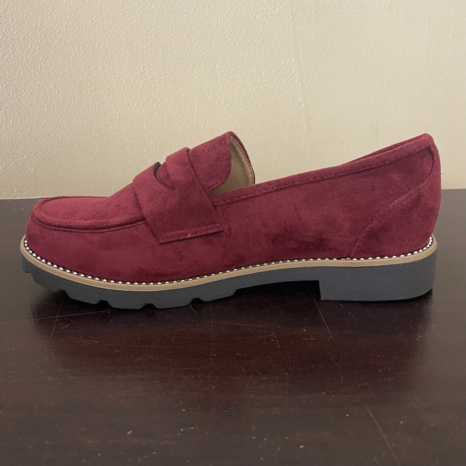 Taryn Women's Burgundy Suede Loafers Slip-On Comfort Flats Lug Sole Shoes