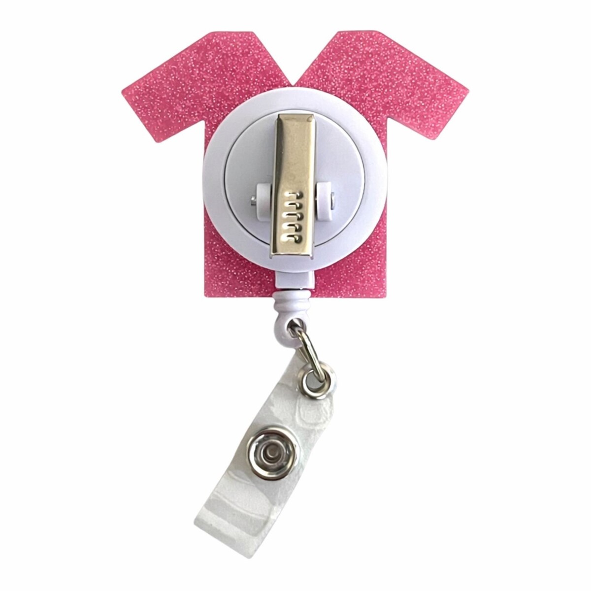 Scrub Life Badge Pink Glitter Nurse Badge Holder Retractable ID Clip