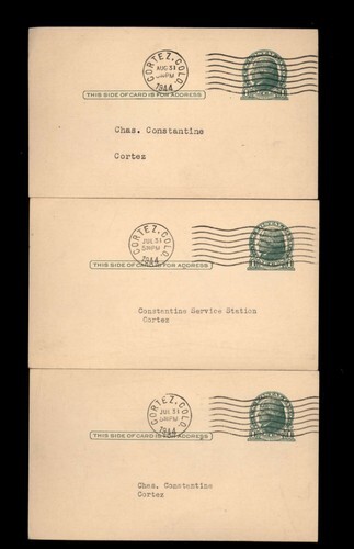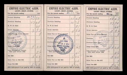 1944 USPS card x 3 - EMPIRE ELECTRIC ASSN. Cortez Colo. electric bill stamp paid