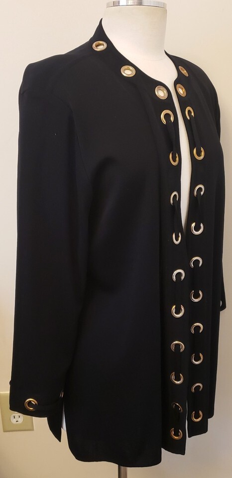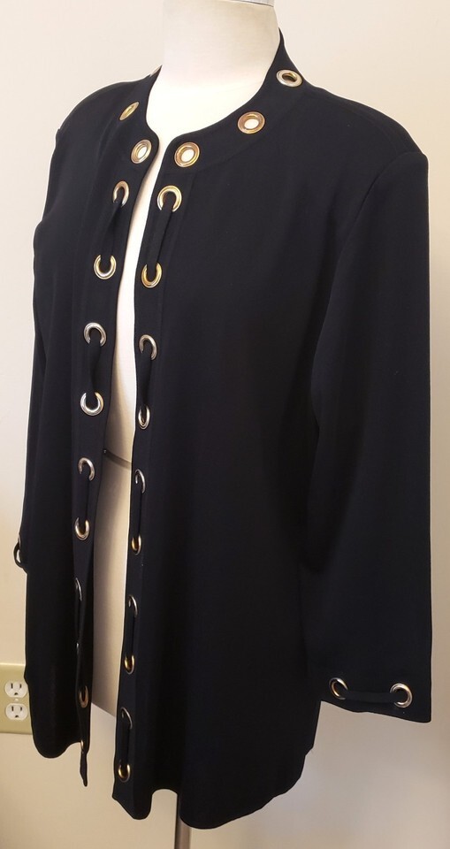 Exclusively Misook Cardigan with Metal Ring Accent Size-1X Black 100% Acrylic