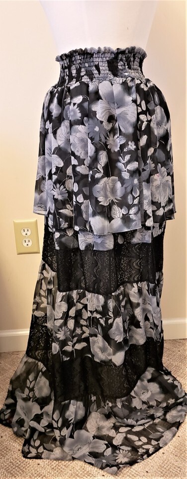 MISA Los Angeles Floral Ruffled Hem Maxi Skirt Size-M Black