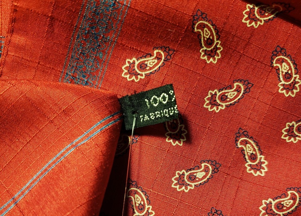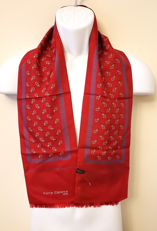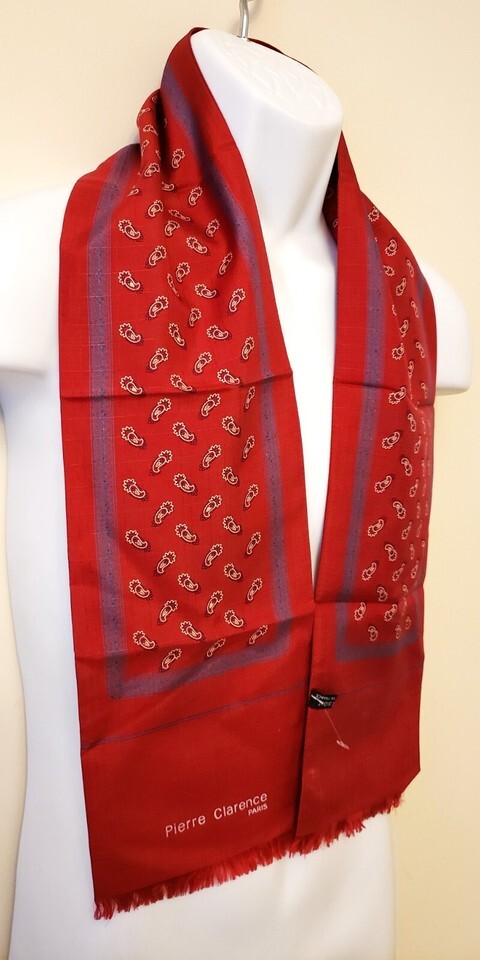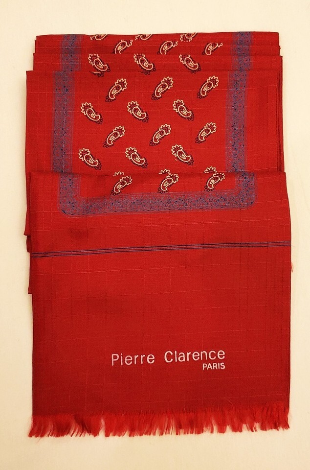 PIERRE CLARENCE FRANCE Men's Luxury Long Scarf 100% Silk Red Paisley Pattern