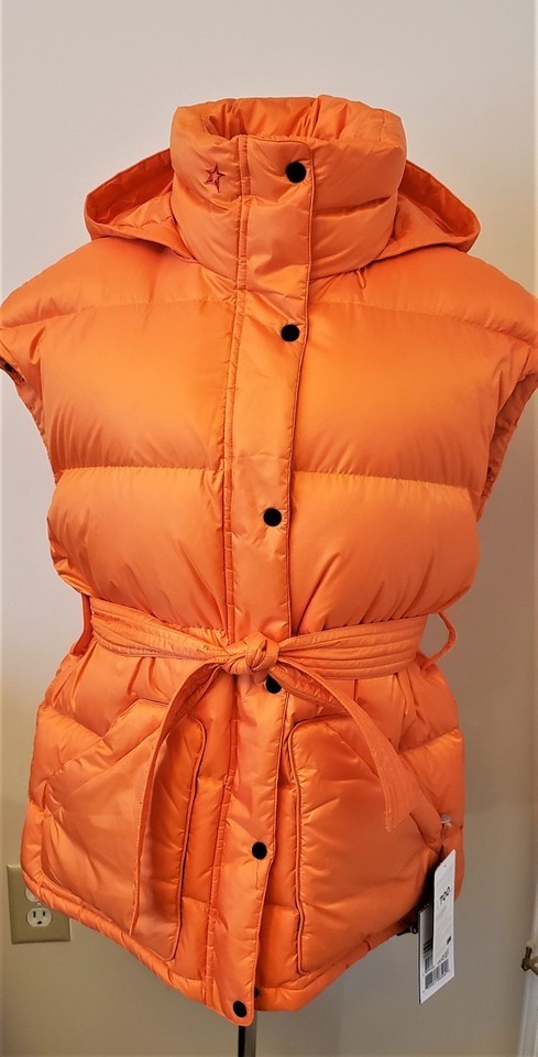 Perfect Moment Women's Luxury Ski-wear Hooded Belted Vest Size -L Orange