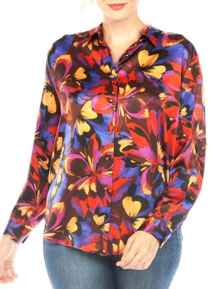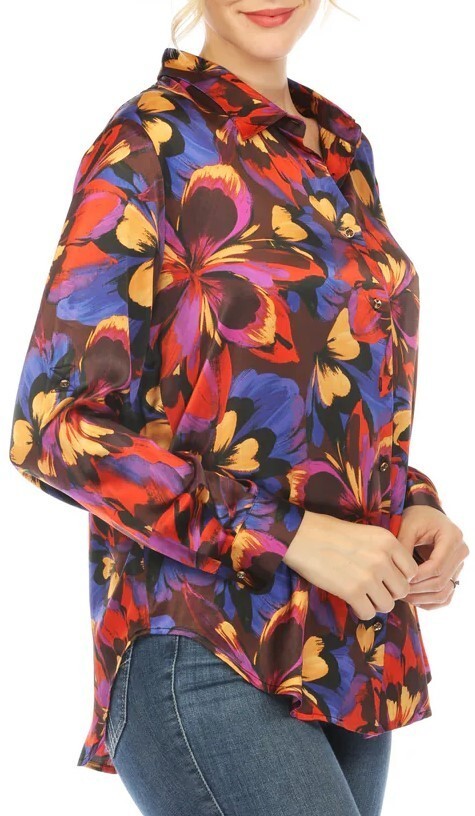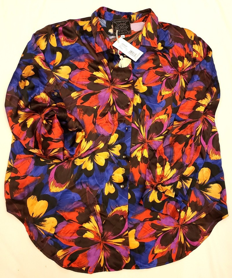 Johnny Was 100% Silk Multicolor Floral Shirt Size-L
