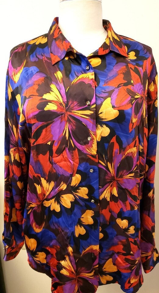 Johnny Was 100% Silk Multicolor Floral Shirt and 19 similar items