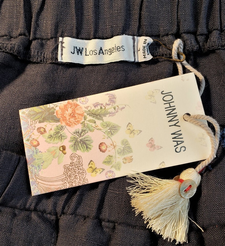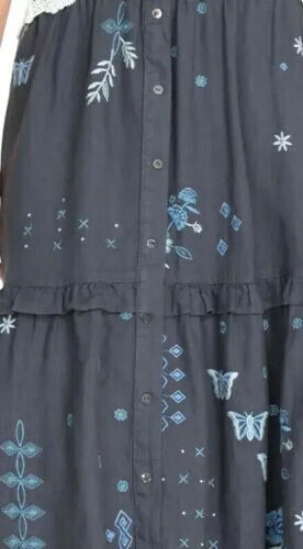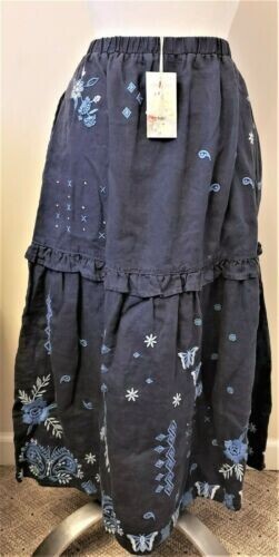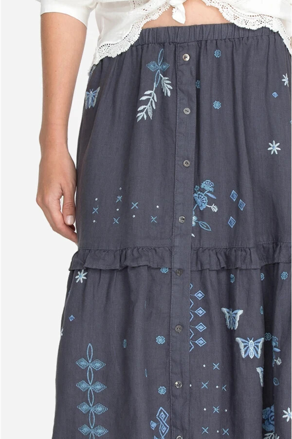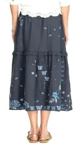 Johnny Was Embroidered Midi Skirt Size- L Gray/Blue 100% Linen