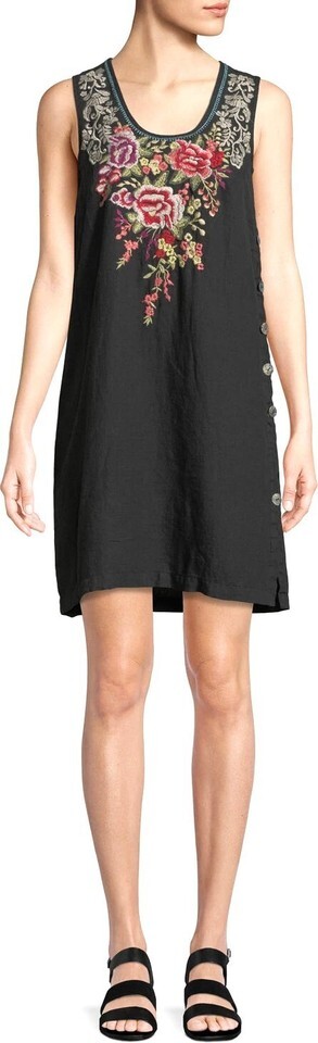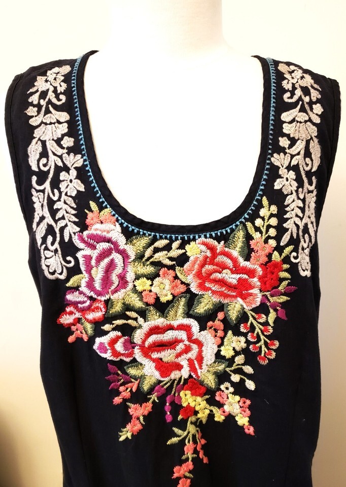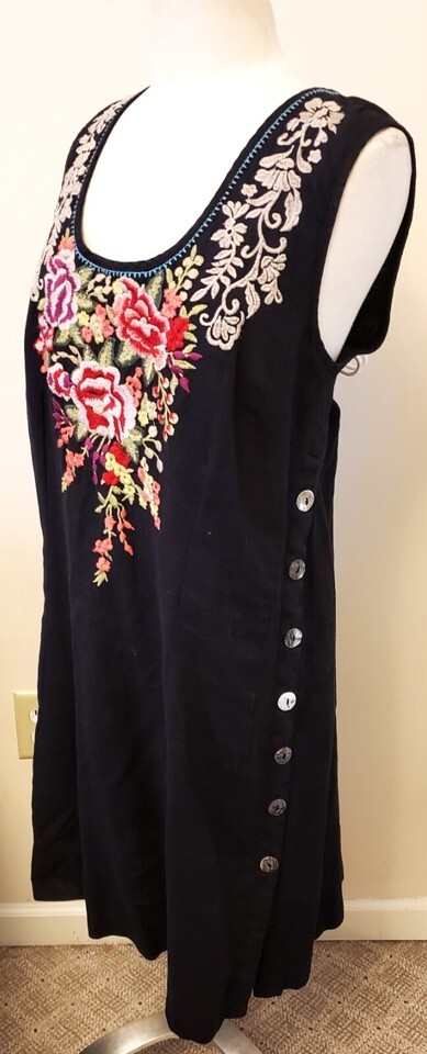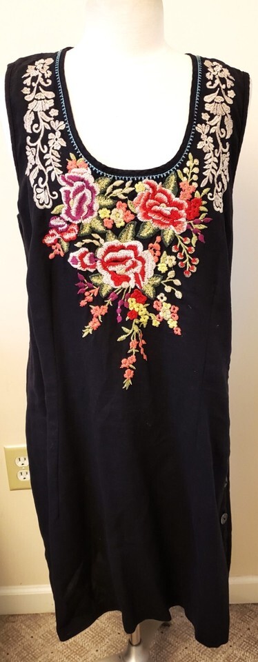 Johnny Was Embroidered Multicolor Floral Dress Size-XXL Black 100%Linen