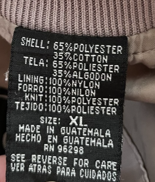 | Garment Care: |