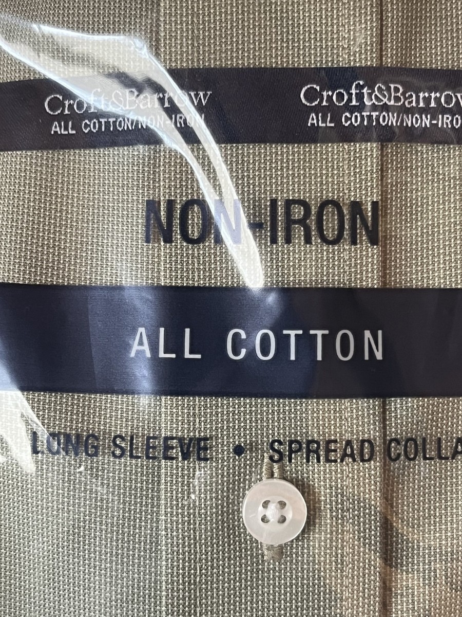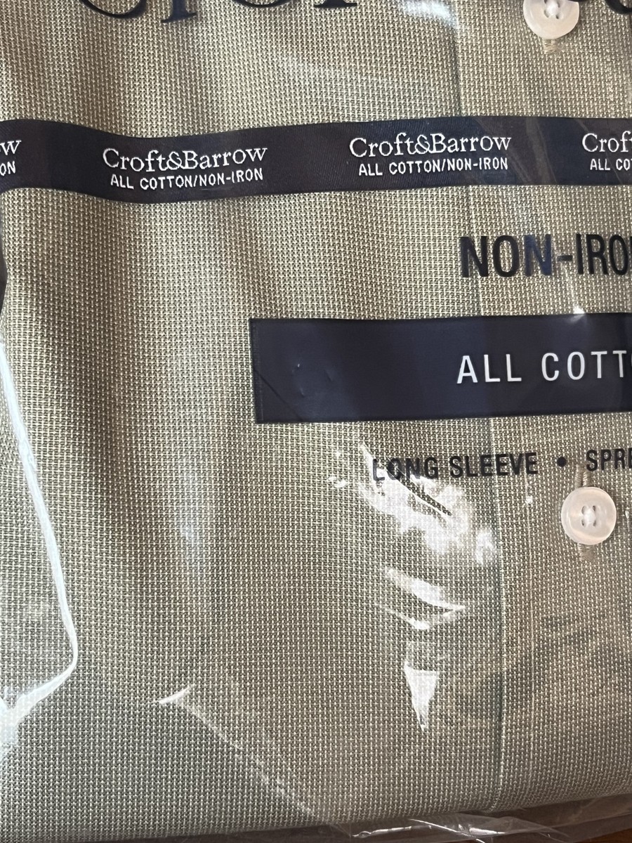 Croft Barrow Shirt Men's 18 1/2 -34/35 Button Up Long Sleeve Green Non-Iron Cotton New w/Tags