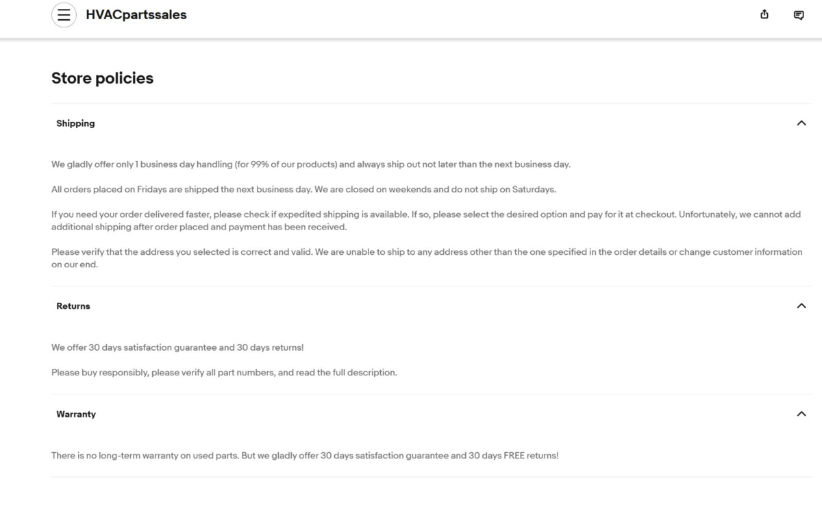 | Seller policies: | |