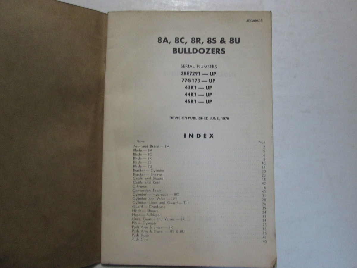 Caterpillar 8A, 8C, 8R, 8S, 8U Bulldozers Parts Book