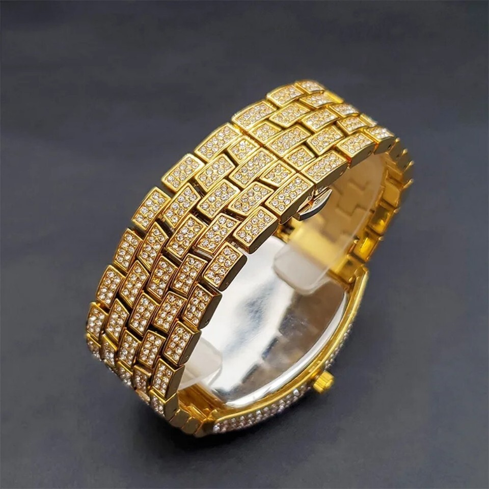 Luxury# Hip Hop Custom Bling Ice Out Men's Watch Iced Simulated Diamond Silver