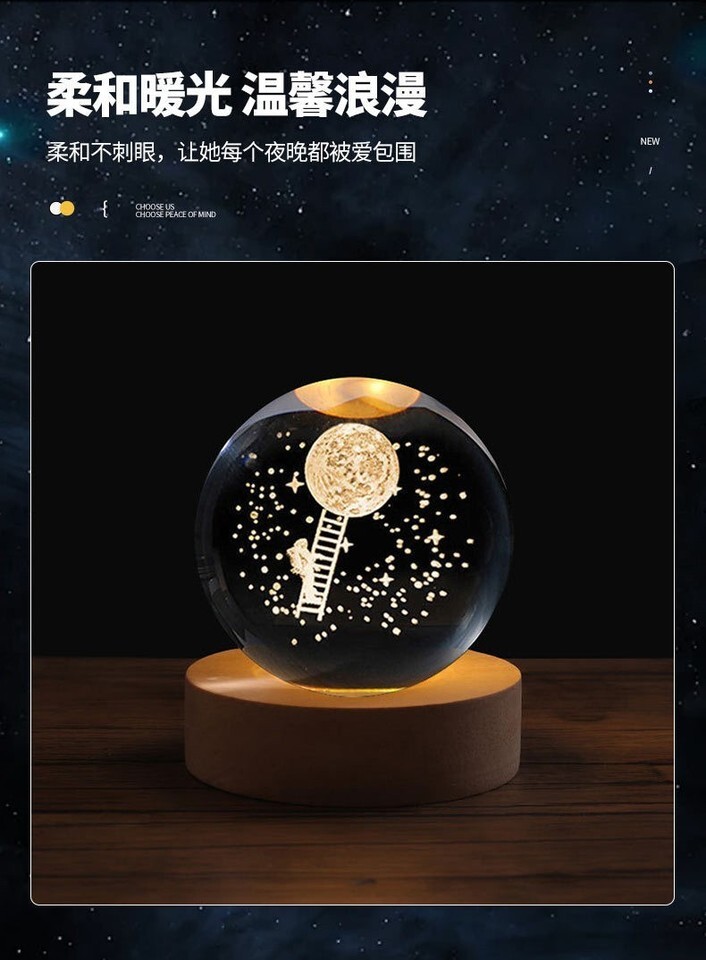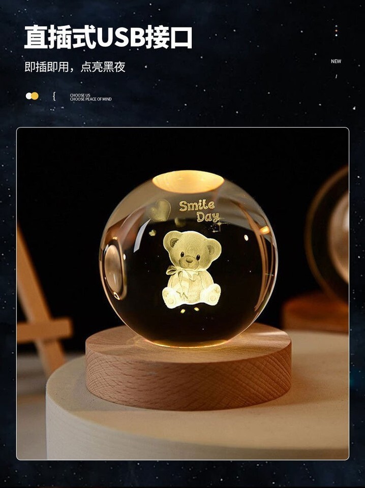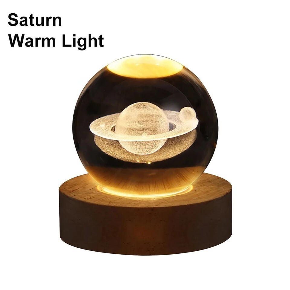 3D Crystal Galaxy Moon Planet Ball with Base Table Lamp USB LED Night Light Gift