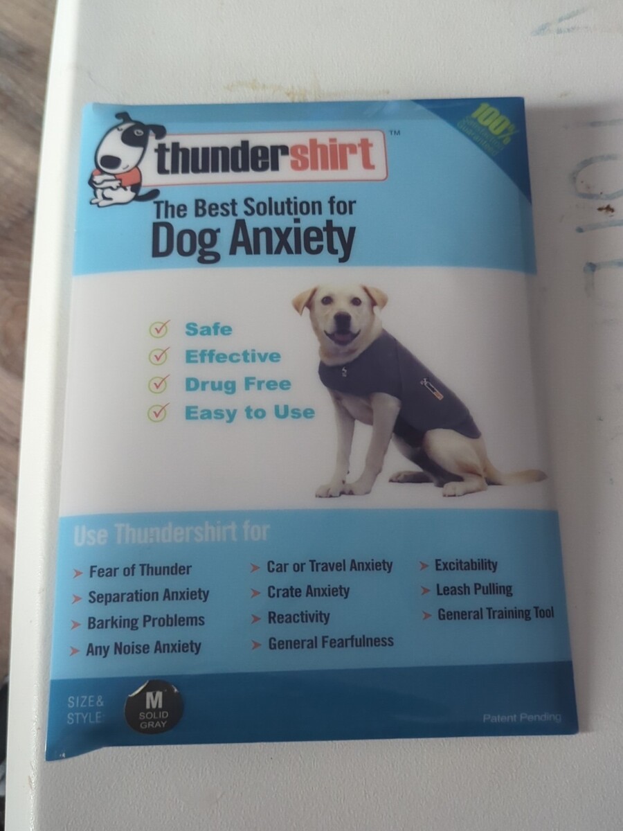 The Thundershirt Classic Dog Anxiety Travel Solution in Medium size is a solid gray pet shirt designed for dogs of all breeds. Made from a comfortable cotton blend material, this shirt provides comfort and relief for dogs suffering from anxiety. The ThunderShirt brand is known for its quality and effectiveness in helping dogs feel calm and secure during travel or stressful situations. Perfect for pet owners looking for a stylish and practical solution to help their furry companion feel comfortable and safe.