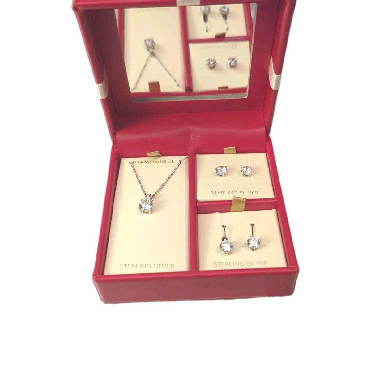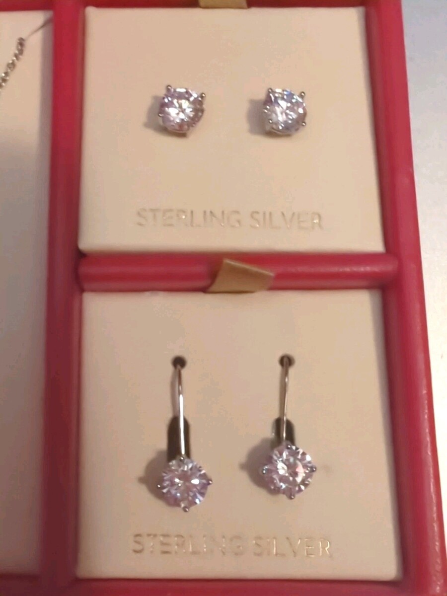 Diamonique Sterling Silver Set of 3 Pendant and Earrings Set NIB