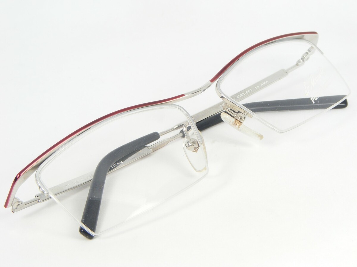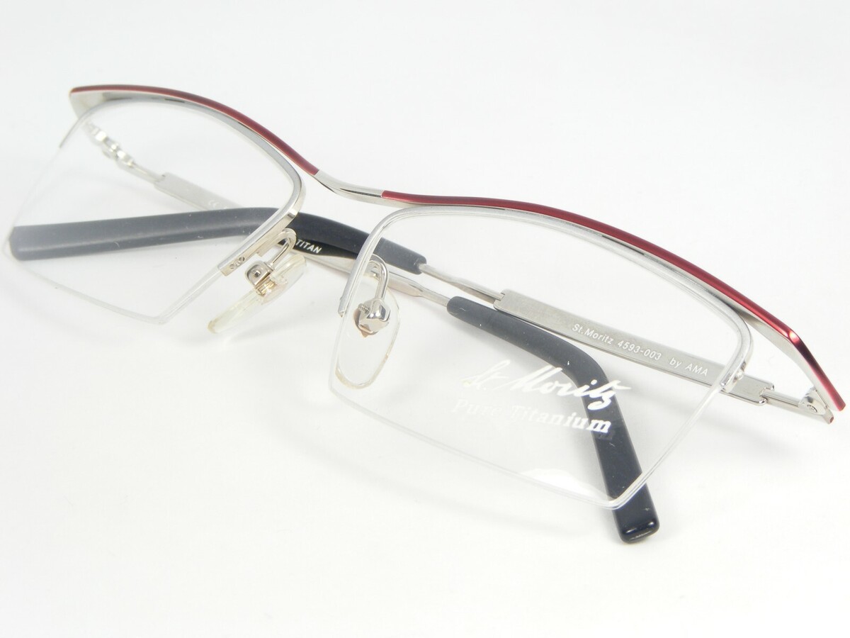 St.Moritz by AMA 4593 003 SILVER /RED EYEGLASSES PURE TITAN FRAME 53-17-135mm