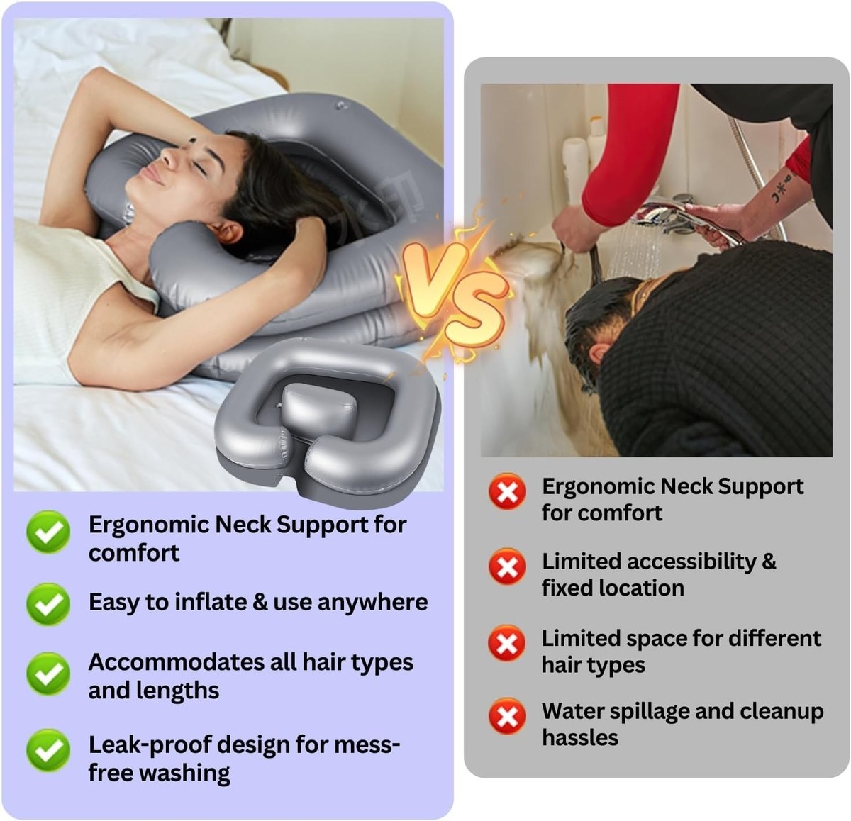 Allows for comfortable hair washing while seated or in bed, ideal for those disabled, elderly, or bedridden.