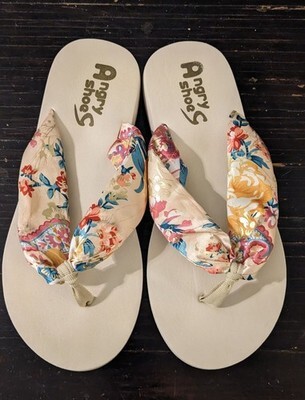 8-8.5 Cute Silky Fabric Thong Sandals BEIGE FLORAL