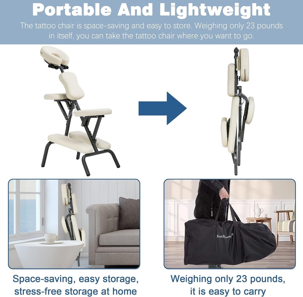 Versatile Folding Massage Therapy Chair - Perfect for Tattoo Artists Salons