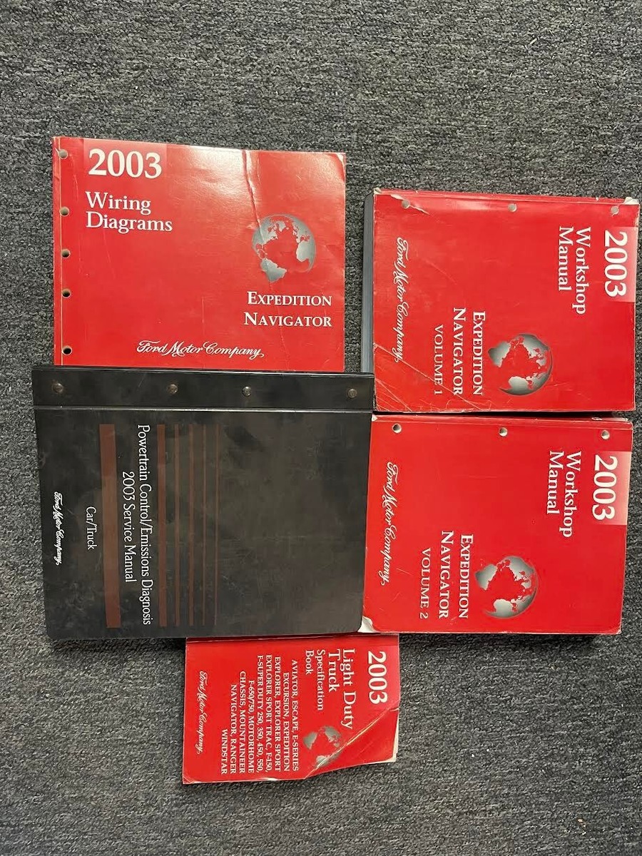 Set di manuali di servizio Ford Expedition/ Lincoln Navigator del 2003, manuale degli schemi elettrici, manuale di diagnosi delle emissioni di controllo del gruppo propulsore, libro delle specifiche del camion