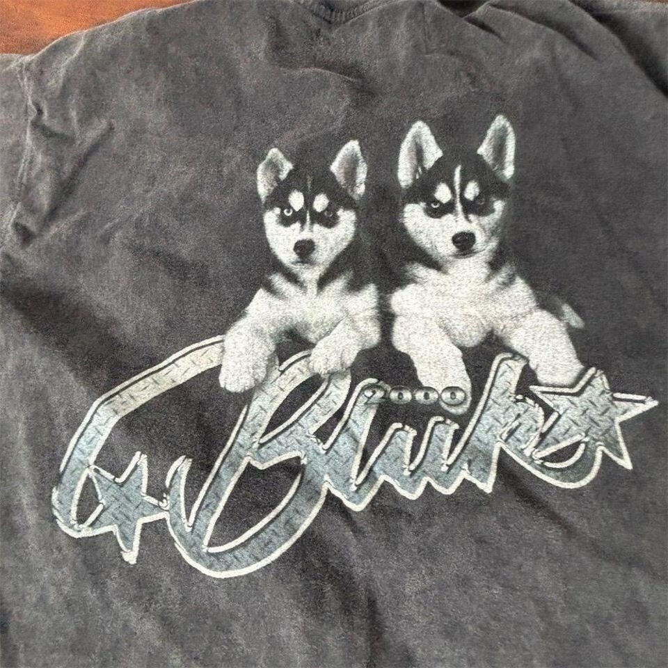 Bluko Men's Vintage Graphic Tee M Gray Distressed Husky Puppies Shirt
