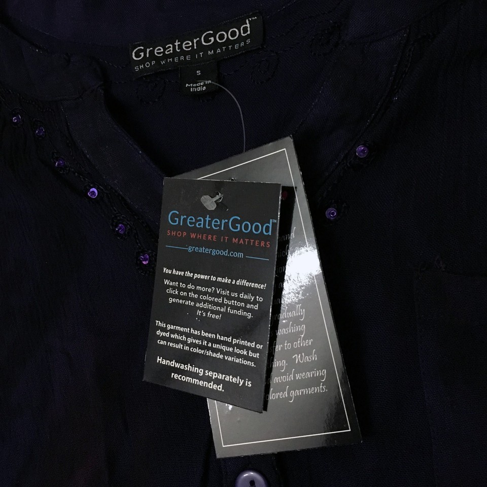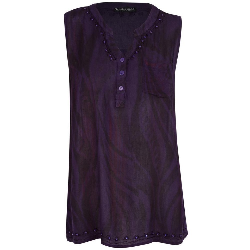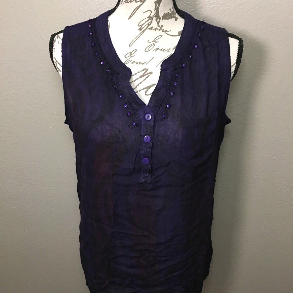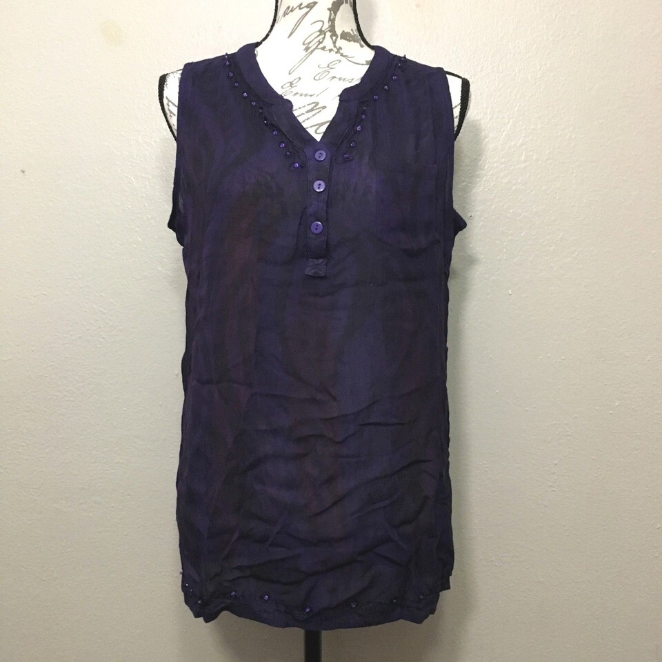 Greater Good NWT Womens PURPLE Sleeveless Sheer Rayon Beaded Henley Top - Small
