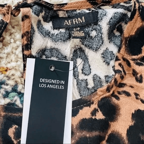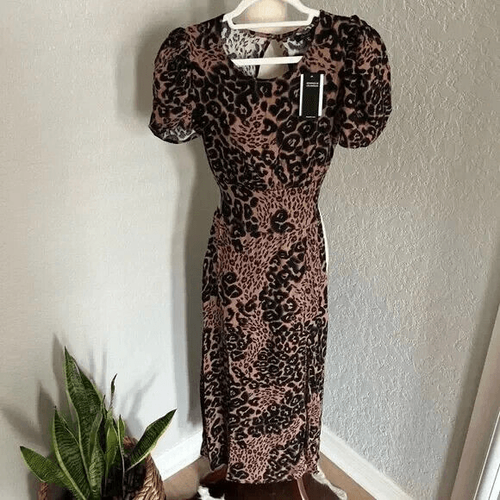 AFRM Jamie Print Open Back Short Sleeve Dress, Brown/Black Animal, Small, NWT