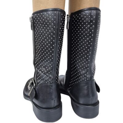 Steven Steve Madden Zain Black Leather Boots Silver Stud/Buckle/Zipper Design Sz 7.5