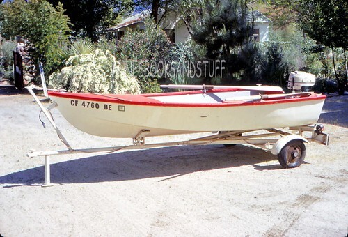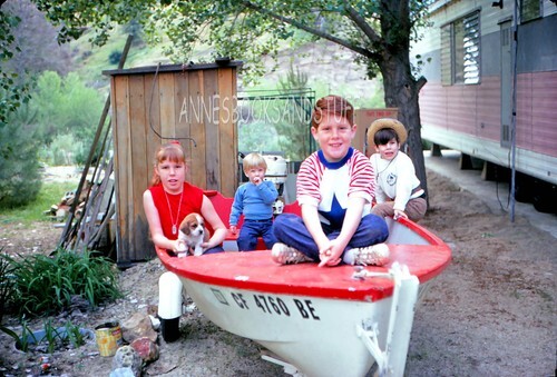 35 mm color slides lot of 2 * 1972 small BOAT on TRAILER - KIDS Puppy on BOAT