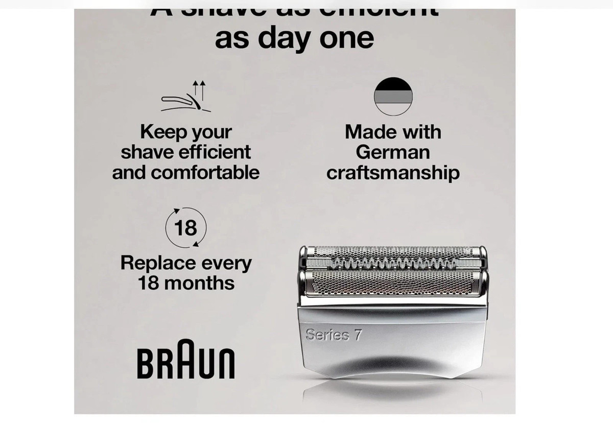 The precision foil and cutter system is engineered to maintain close, efficient shaving performance and is recommended by Braun for replacement approximately every 18 months.