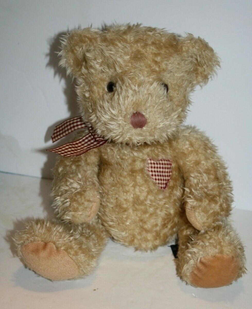 Russ Hucklebeary Teddy Bear 13" Beige Plush Red Gingham Bow Heart Soft Toy 18913