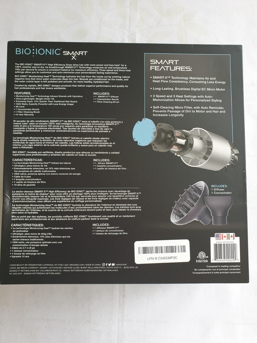 Bio Ionic Smart-X Hair Dryer with Diffuser Reduces Frizz 3 Heat & Speed Settings