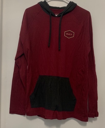 RVCA Shirt Adult Medium Red Gray Hipster Surf Skate Logo Casual Hoodie Tee Men