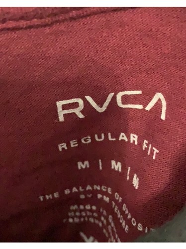The RVCA Shirt is a stylish and casual hoodie tee designed for men in size medium with a regular fit. The shirt features a hipster theme with a red and gray color scheme, making it perfect for those who love surf and skate styles. Made of a comfortable cotton blend material, this machine washable shirt is adorned with the RVCA logo and graphic print, adding a touch of edgy style. With short sleeves, a crew neck, and pockets, this tee is a versatile addition to any man's wardrobe, suitable for various casual occasions. Size medium. Preloved in great condition. Bought this for my nephew, He used it once in college.