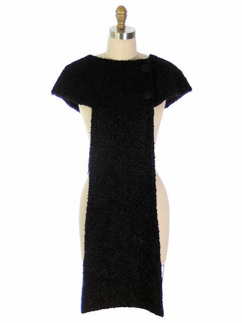 Faux Karakul fur; black taffeta lining; asymmetrical button front; couture accessory piece.