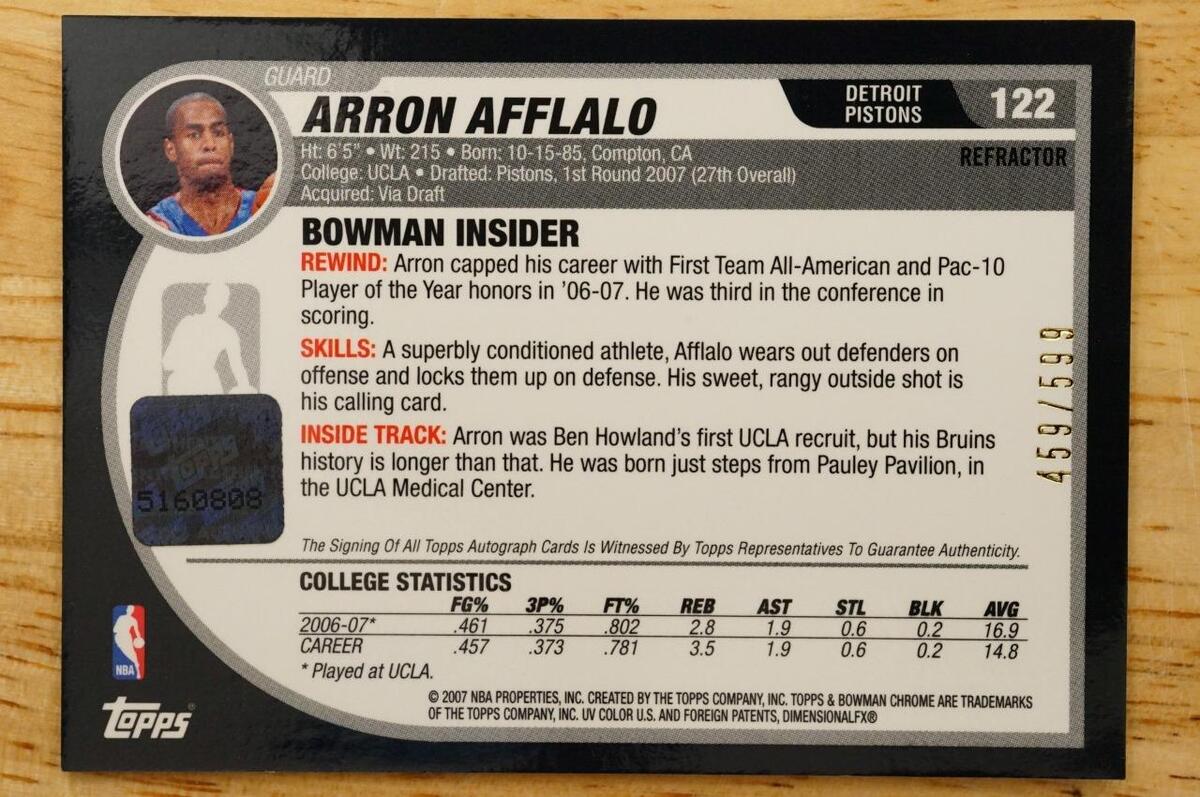 2007-08 Bowman #122 Arron Afflalo Chrome Refractors Rookie Autographs 459/599 RC